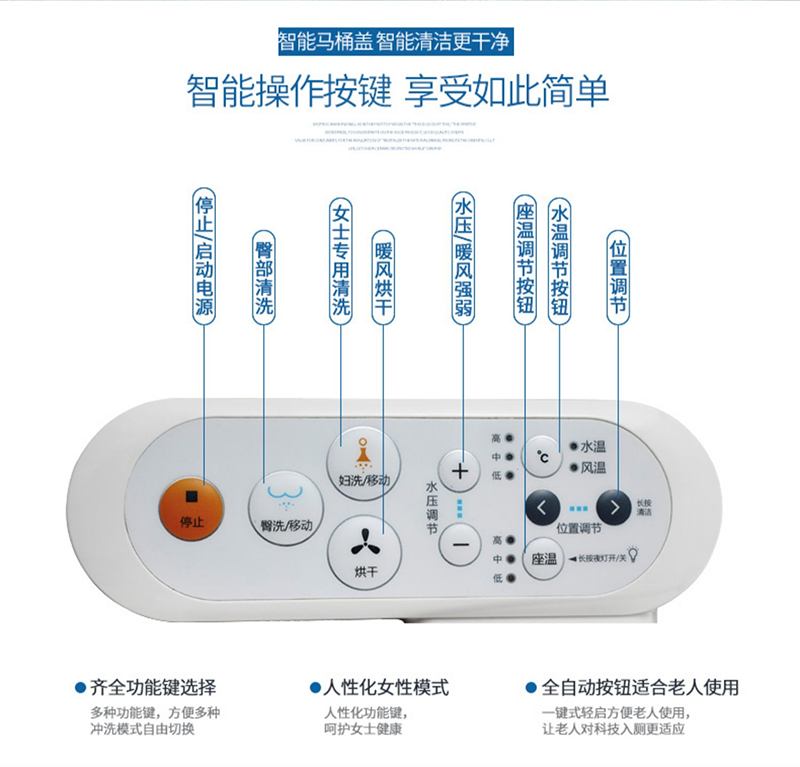 6、 女性洗凈:專為女性日常衛(wèi)生而設(shè)計,由女性專用噴嘴噴出溫水,精心清洗,防止細(xì)菌感染;
